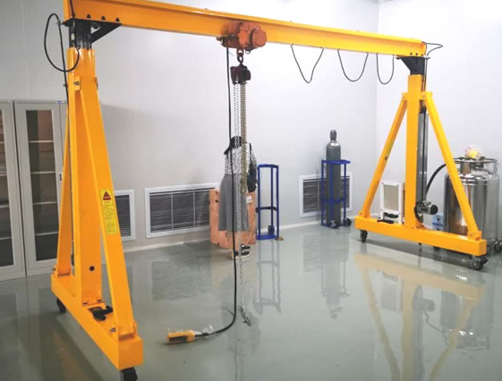 移動龍門架可搭配手拉葫蘆、電動葫蘆、環鏈電動葫蘆等起重工具使用,葫蘆懸掛在龍門架的軌道上,可以實現左右移動。手拉葫蘆是通過單軌小車進行懸掛的,移動單軌小車帶動手拉葫蘆移動,同樣能夠實現左右移動。